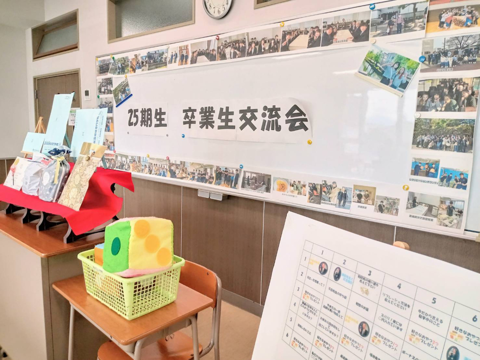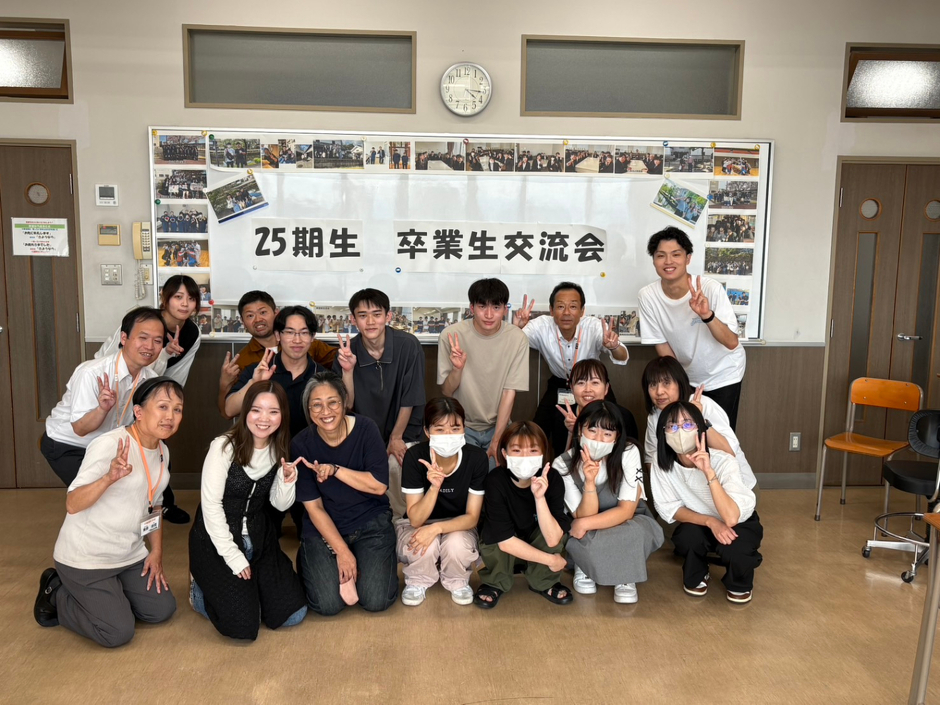 卒業生との交流会を開催 介護福祉 Date:2025.09.12 9月12日(金)今年の3月に介護福祉学科を卒業した皆さんとの交流会を開催しました! 勤務の関係で残念ながら参加できなかった方もいらっしゃいましたが、 久しぶりにクラスメイトとの楽しい時間を過ごすことができました。 またいつでも学校に遊びに来てくださいね!