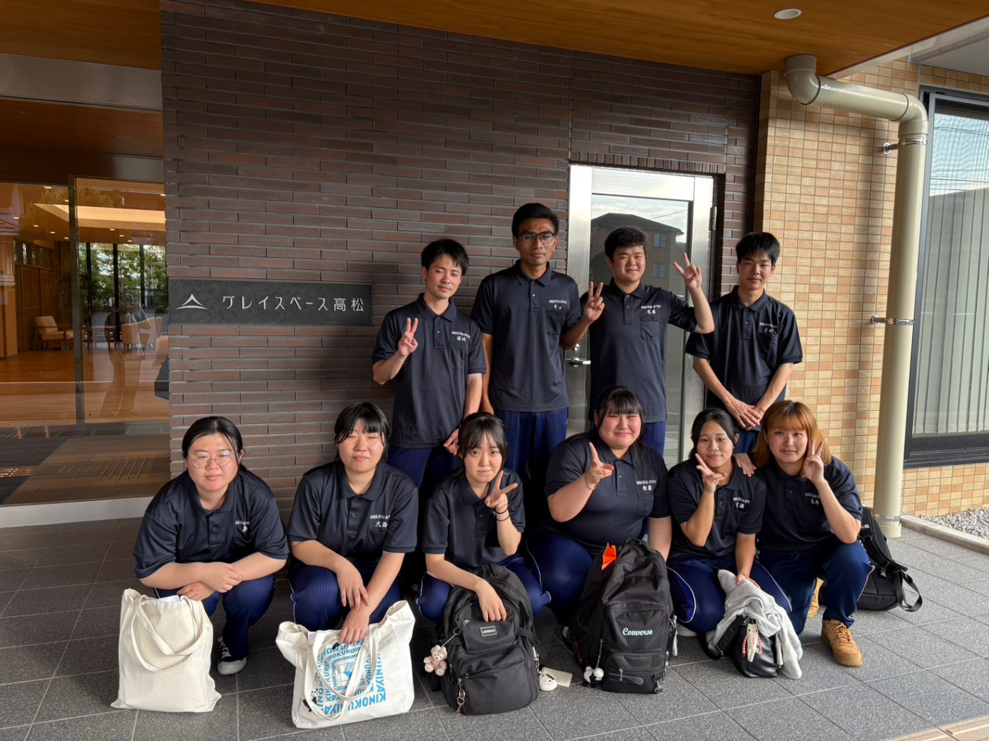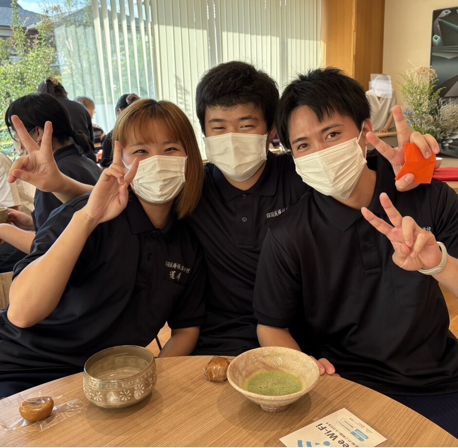 認知症カフェに参加しました。 介護福祉 Date:2025.10.08 10月8日(水)介護福祉学科1年生が『グレイスベース高松』を訪問し 認知症カフェに参加してきました。 ゆっくりとおしゃべりしながら、皆さんととても楽しい時間を過ごすことができましたよ。 ありがとうございました!